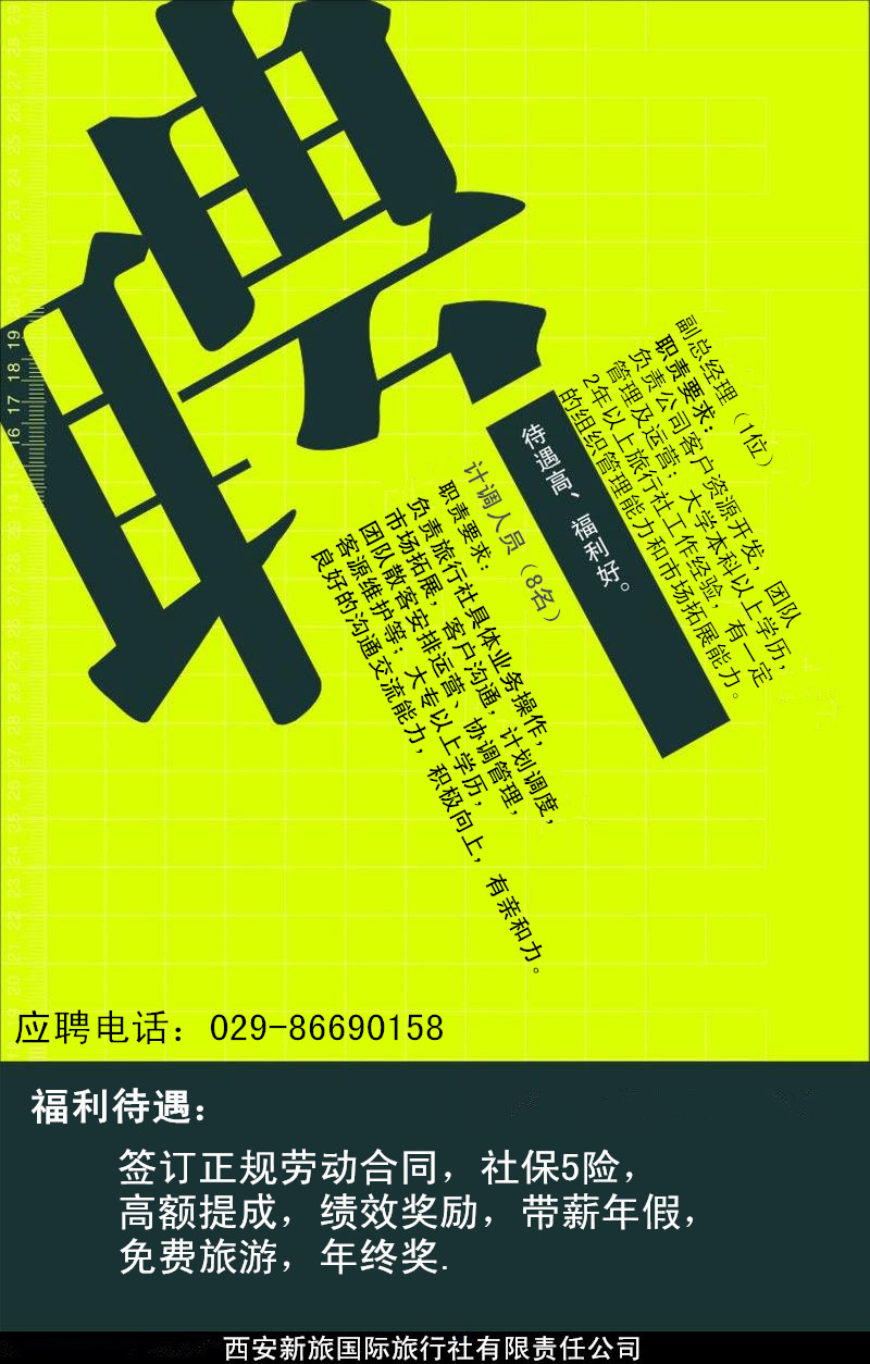 旅游計(jì)調(diào) 8名 西安新旅國際旅行社 招聘旅游計(jì)調(diào)人員